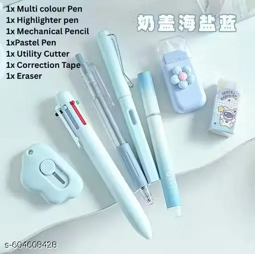 Name: Cute Stationery Set School Supplies, 7 Piece Office Supplies Including Ballpoint Pens, Sharpener, Highlighter, Correction Tape, Ruler, Utility Knife(1 Piece Random Color)
